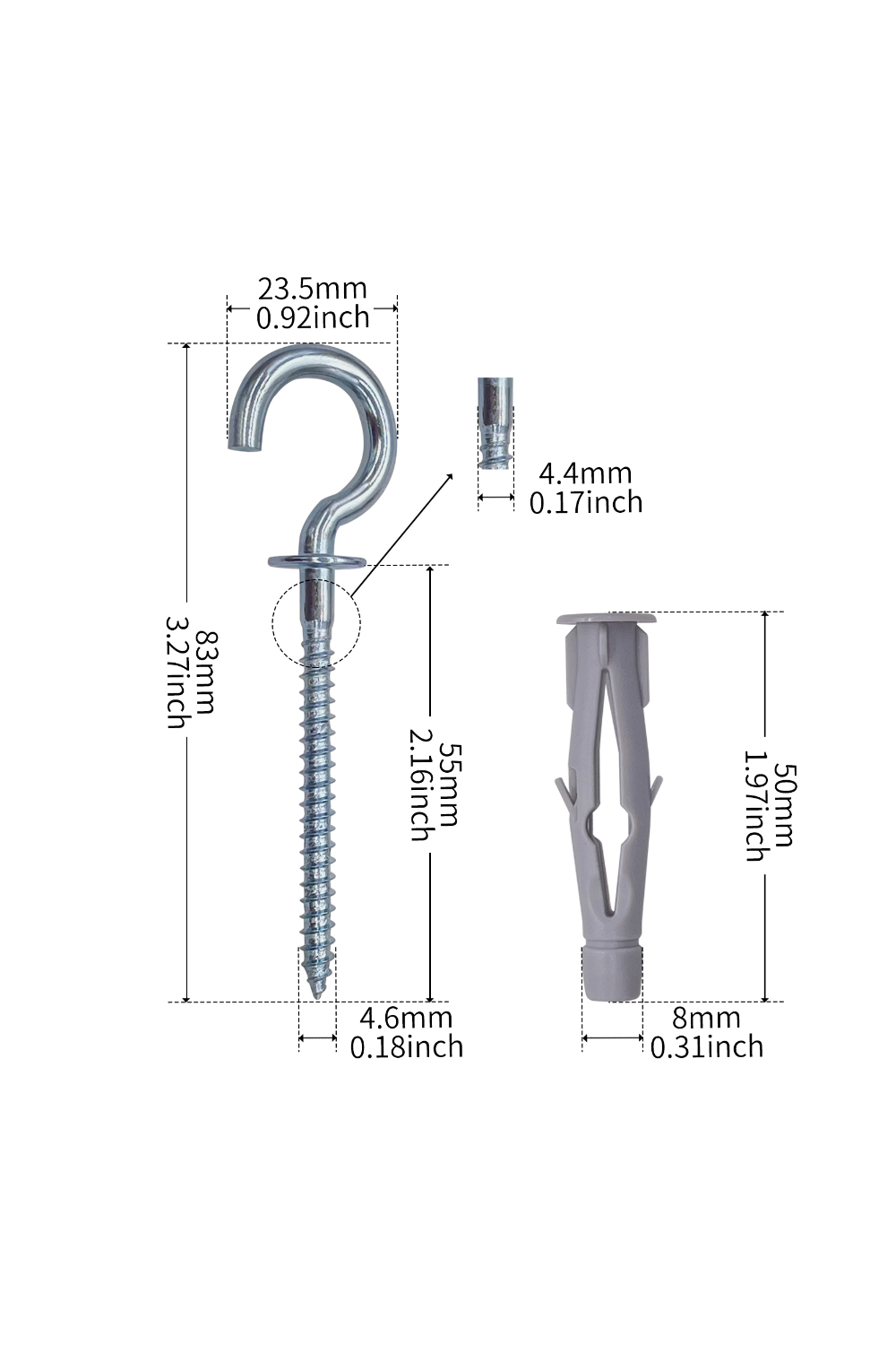 • [High-Quality Hook] Cup hook screws are made of high-quality Zinc Plated metal, anti-rust and anti-corrosion. The high-quality nylon plug effectively expands within solid materials, offering secure anchorage in both perforated and panel-building materials.