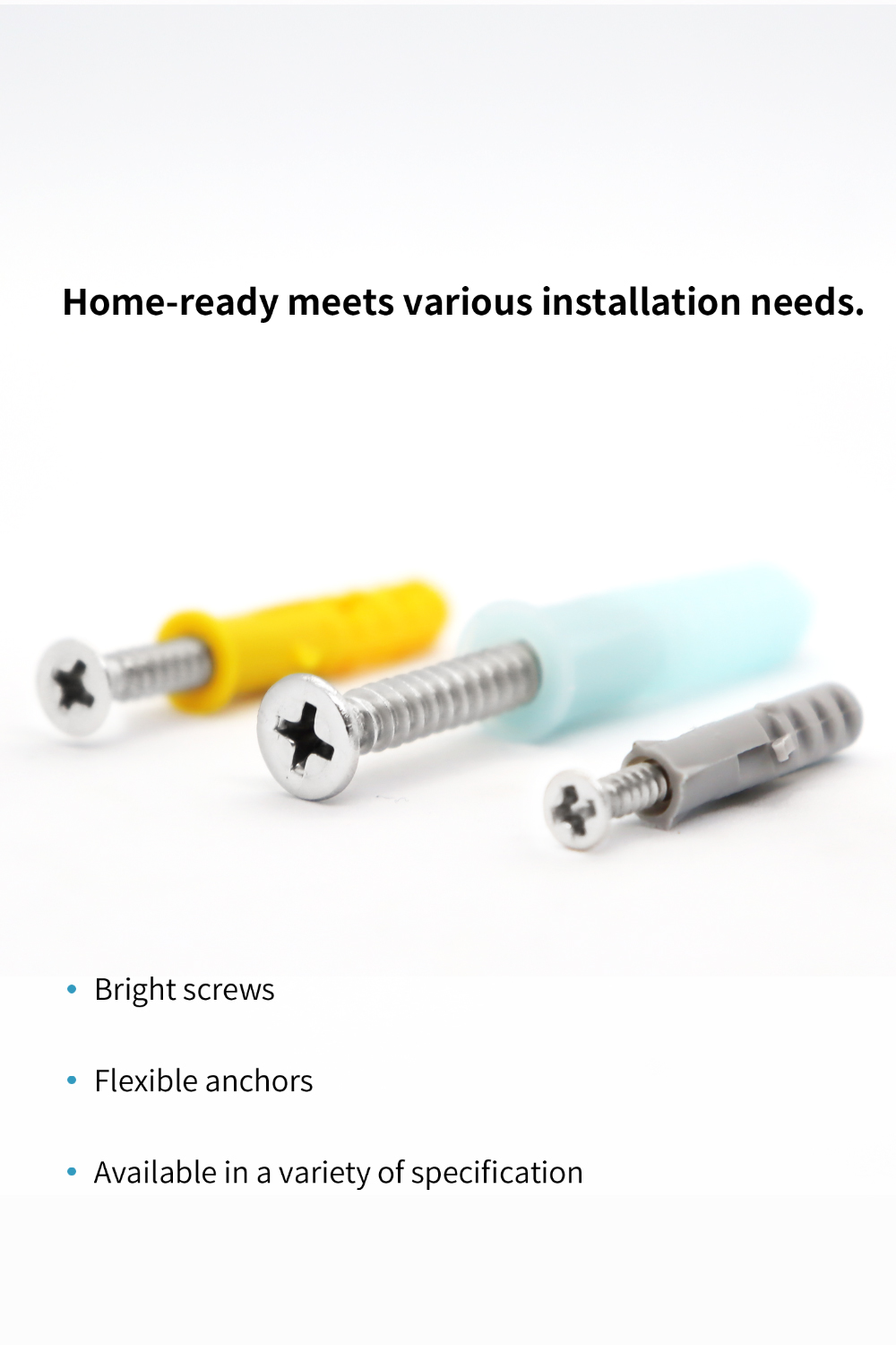 - [Tips] Open the package to find labeled tags for Anchors and Screws, along with a handy storage box included. Feel free to use the tags to organize your items.